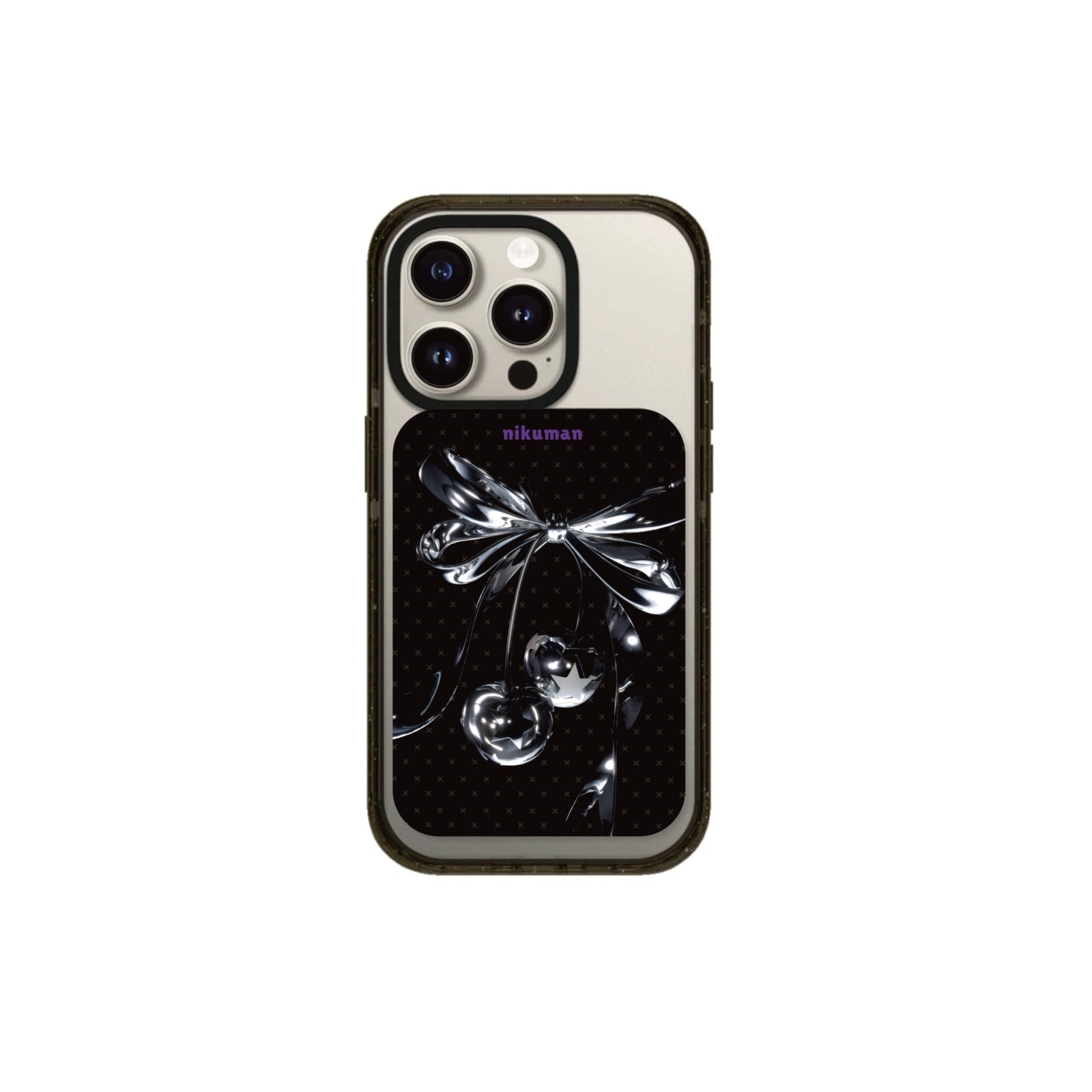 Magnetic meets magic! This sleek cardholder grips phone securely, doubles as a viewing stand, and dazzles with its dark cherry allure—glossy bow, crystal-like accents, and a hidden star for that extra sparkle.