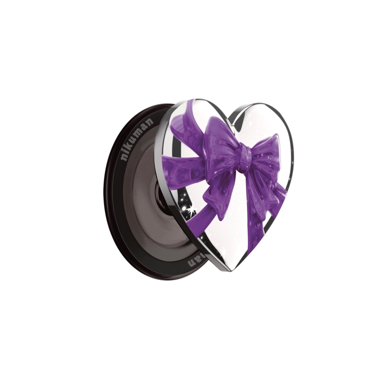 The Purple Disco Dream combines retro flair with MagSafe power. Its shimmering heart-shaped mirror, tied with a bold purple ribbon, doubles as a customizable grip, stand, and style statement. Secure, adjust, and kick back—your phone’s new disco partner.