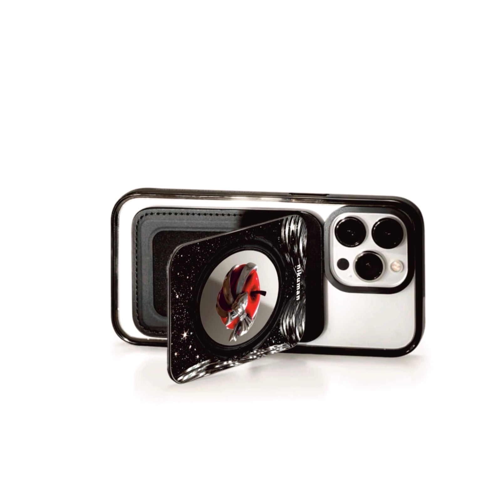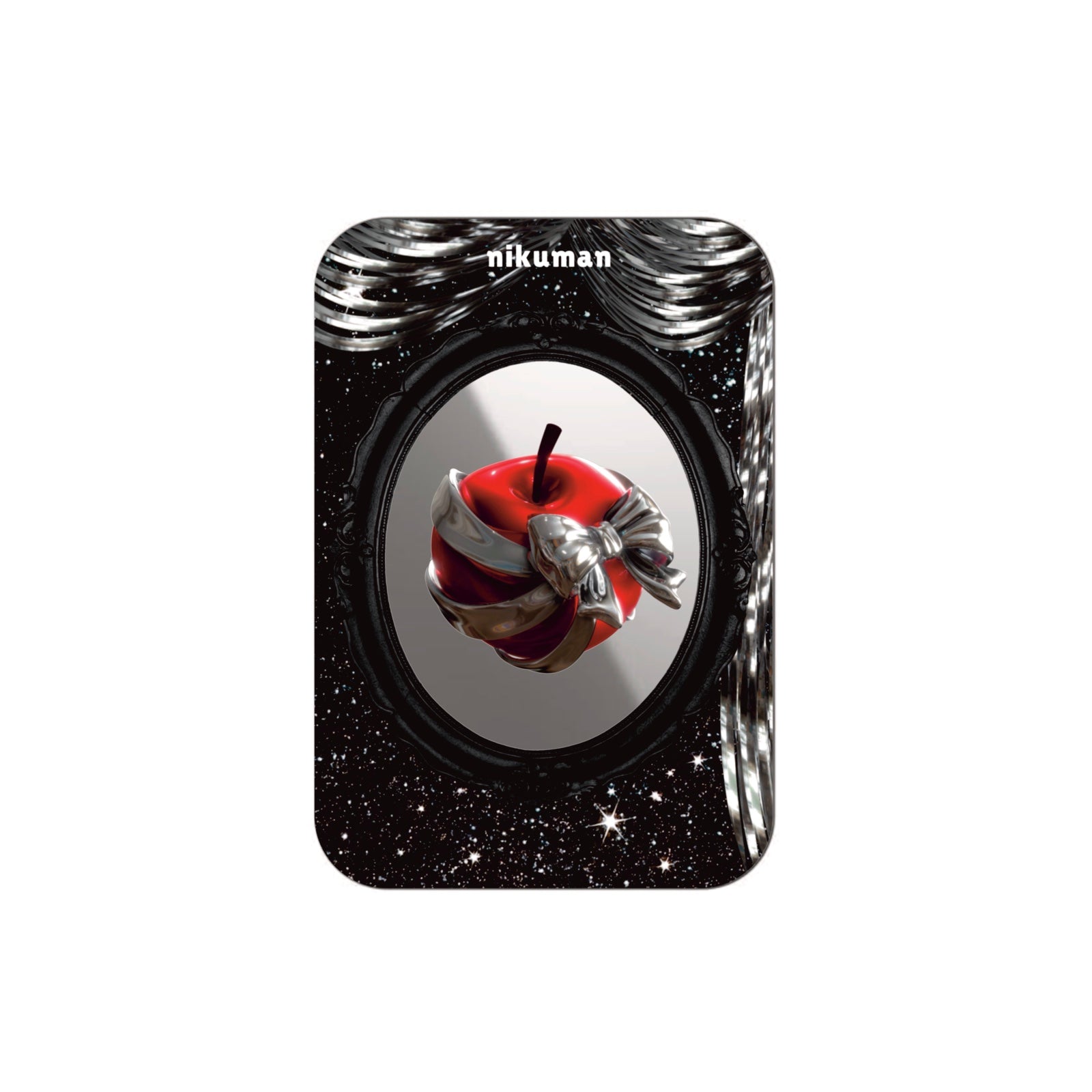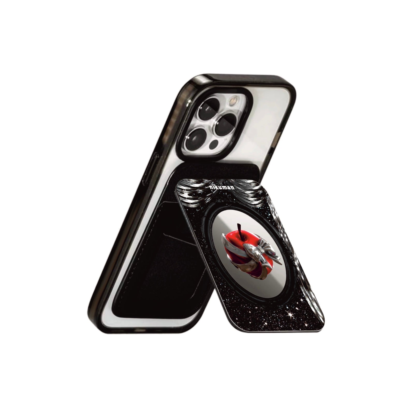 The Forbidden Snap Mirror combines playful sophistication with tech-powered utility. Its starry-night backdrop frames a bold apple motif and functional mirror, while MagSafe grip ensures cards stay secure and iPhone becomes a hands-free viewing hub. Style meets versatility for the on-the-go explorer.