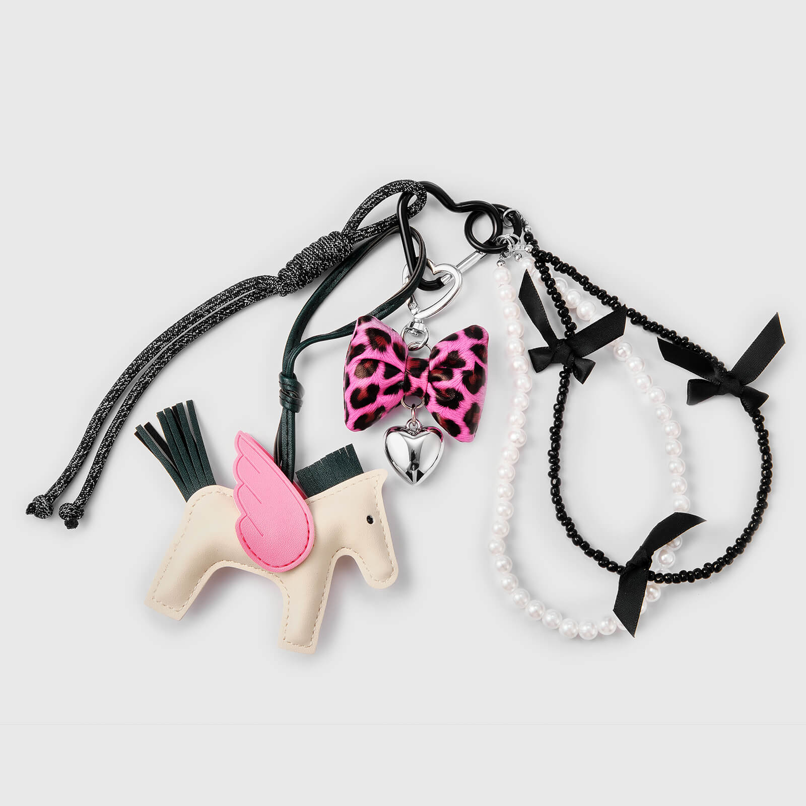 The charm combines whimsical craftsmanship with functional flair. Featuring a stitched pony centerpiece, luxe pearls, and detachable MagSafe compatibility, it adds personality to your device while securing your grip.