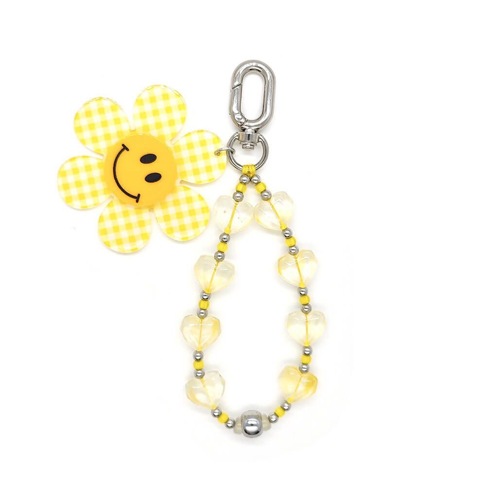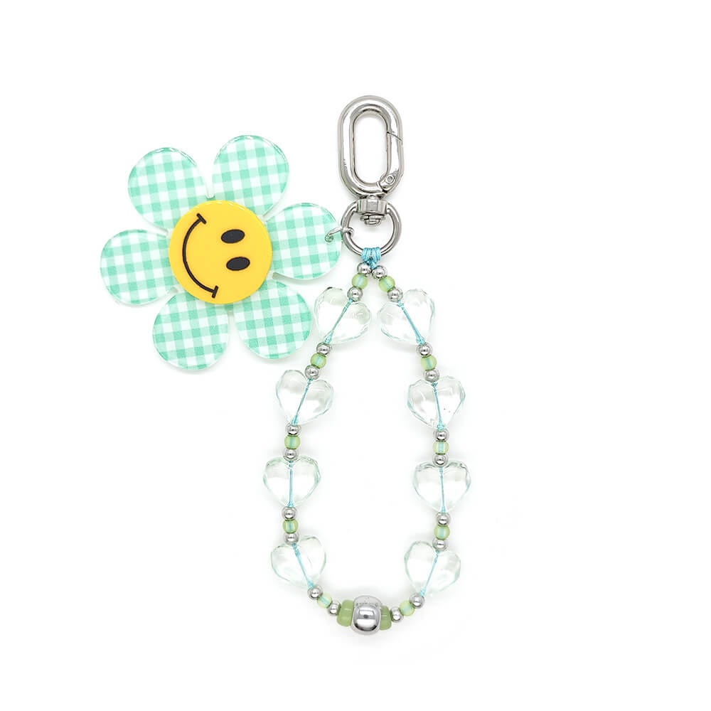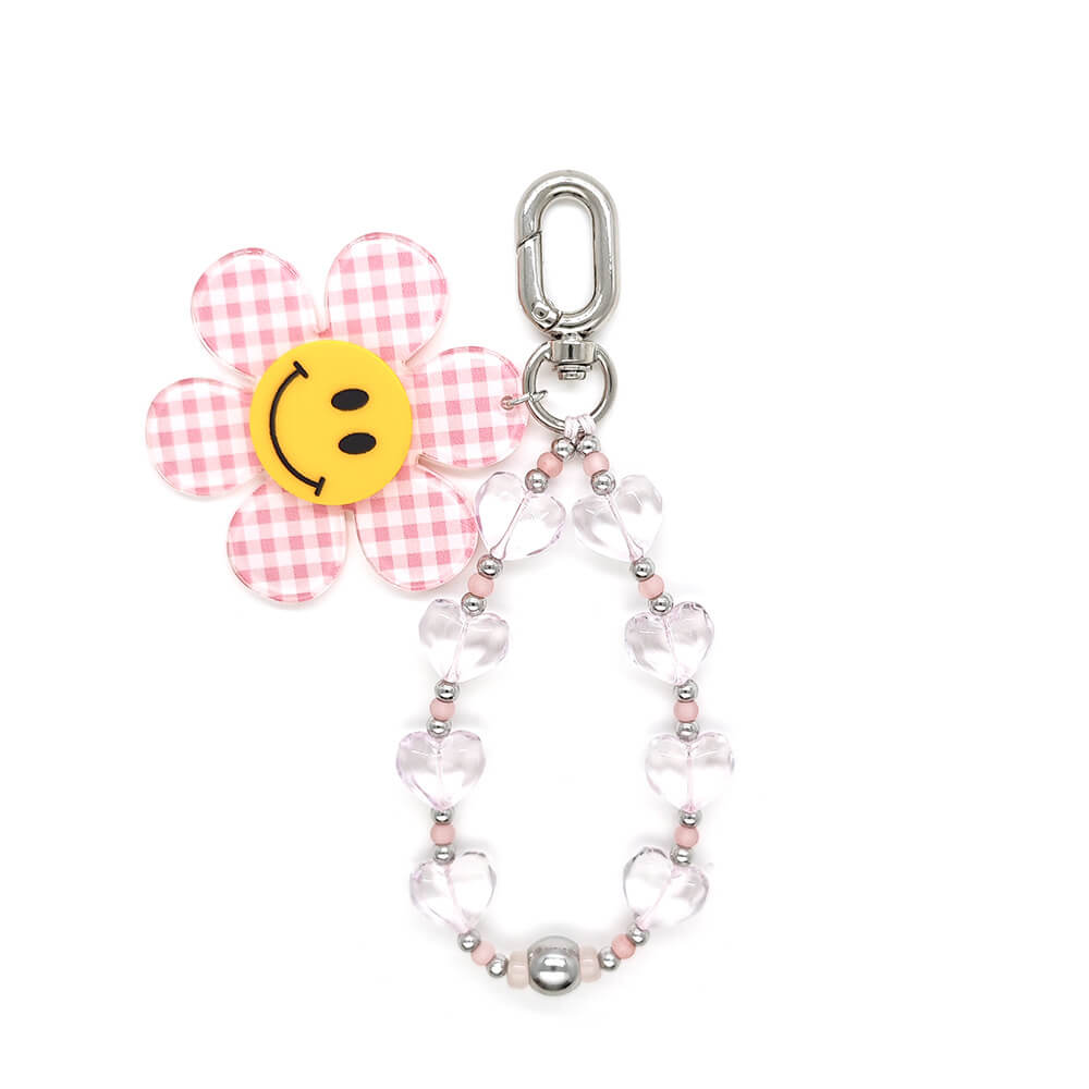 Bright, cheerful and a little bit nostalgic — it is designed to instantly lift your mood and your outfit. A smiley gingham daisy paired with a loop of translucent heart beads creates the perfect balance of cute, fresh and effortlessly stylish. Clip it onto your bag, keys or phone and let this tiny dose of sunshine follow you through the day.